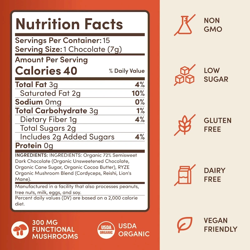 RYZE Nighttime Cocoa guarantees your best sleep ever. Looking for extra chocolate? Melt your RYZE Mushroom Chocolates in your nightly cup for a smooth, rich taste.
