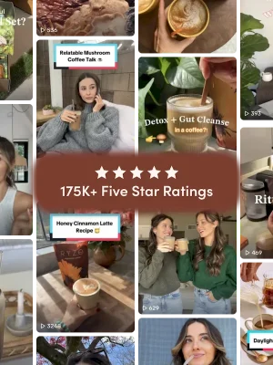 Our blend, enhanced with functional mushrooms and MCT, delivers calm energy that promotes focus, productivity, adrenal health, and … yes, happiness. Our ingredients have been studied for thousands of years and found to enhance brain function, boost immunity, and give balanced energy that keeps you shining all day long. All with less than half the caffeine of regular coffee.